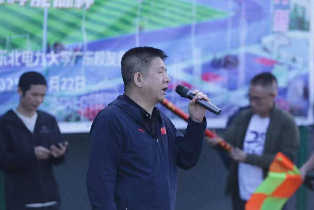 东北电力大学原党委书记、校友总会会长李国庆宣布比赛开幕。广东校友会秘书长、热能881班陈强代表主办方在致辞中欢迎各地校友齐聚广州,期待校友们在绿茵场上以球会友、以赛传情,在拼搏中重温同窗岁月,在协作中再续东电情缘。